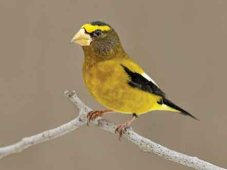 Did you know the Evening Grosbeak is a Species at Risk that sporadically ‘irrupts’ south in the winter? This is when a large number of birds move to a place they are not typically seen due to unusual food availability. Evening Grosbeaks do not migrate in the traditional sense, but when tree seed crops in the Boreal Forest are poor, they can ‘irrupt’ south to Bruce Peninsula National Park and other places to seek additional food.