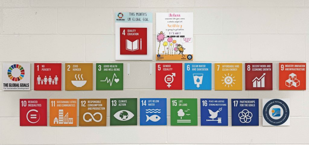 You have likely noticed the UN Global Goal wall in the BPDS lobby, and now the Global Goals are also up at St. Edmunds Public School (St. Eds). Check it out next time you are in the halls at St. Eds!