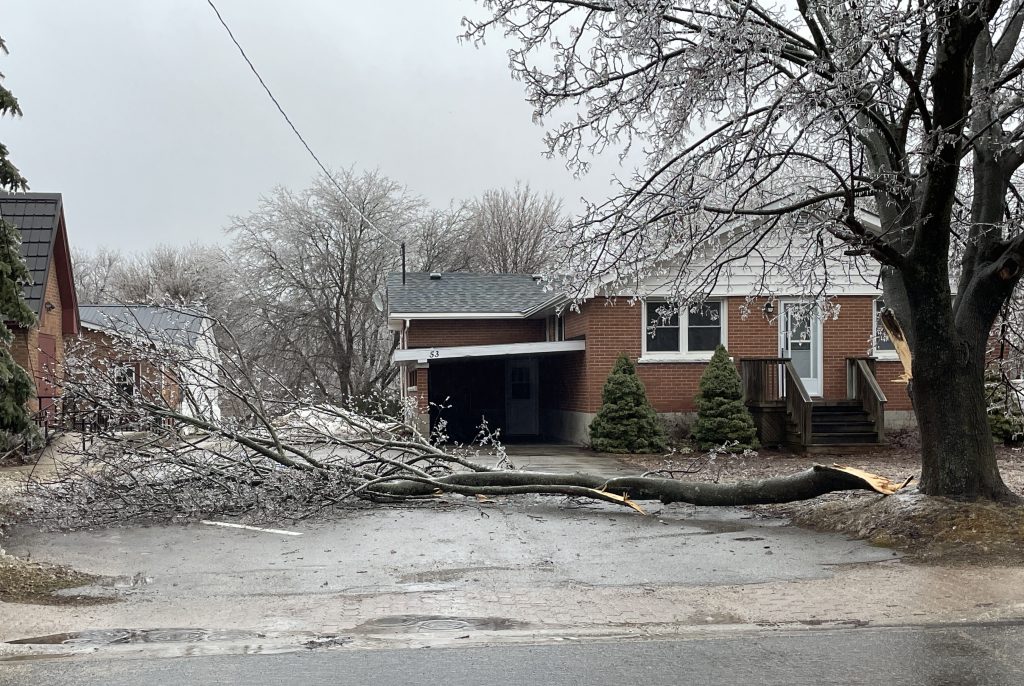 Emergency service personnel and Hydro crews were immediately dispatched and worked diligently to restore power to the community. Many roads were closed as crews dealt with issues: Lindsay Road 30, Elgin Street; the Ida and Helen Street intersection had a cable down; Tower Road was affected by multiple broken poles and downed power lines. Crane Lake Road had trees down over hydro lines. Byron Street at Barrow Street had a downed line.