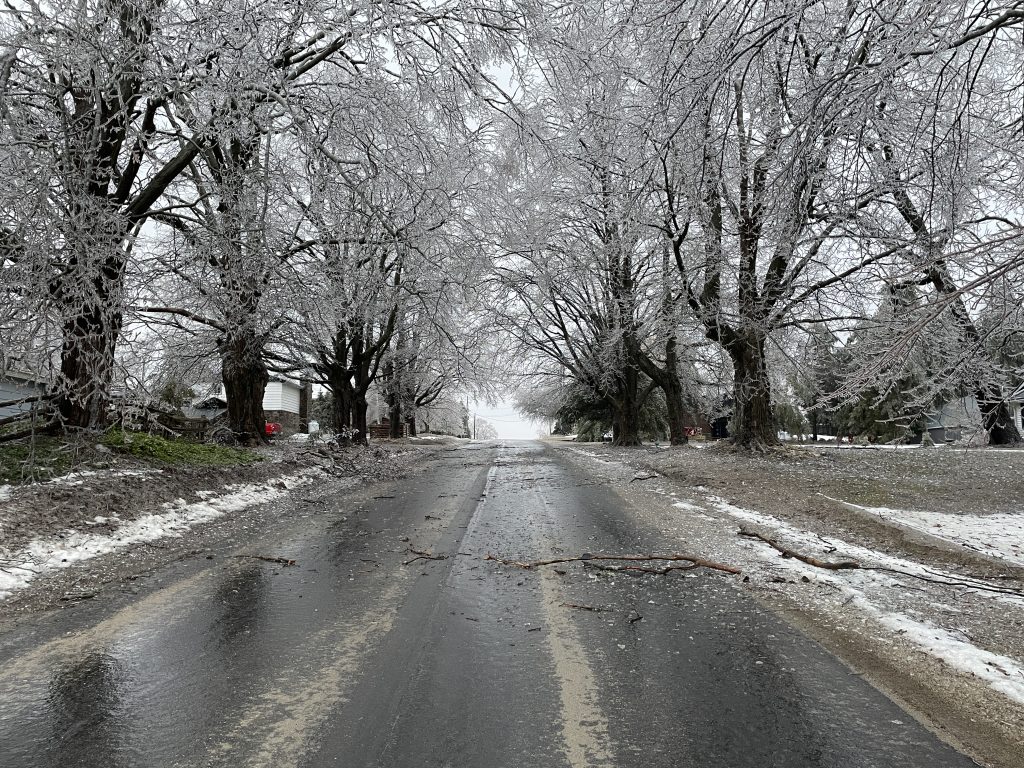 The last weekend in March 2025 offered up an icy mix of weather, with freezing rain encasing vegetation and infrastructure throughout Northern Bruce.