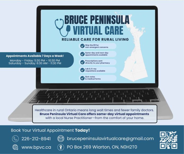 A nurse practitioner-led virtual clinic is transforming healthcare access for Bruce Peninsula residents. With ongoing physician shortages and long ER wait times, Bruce Peninsula Virtual Care (BPVC) offers same-day or next-day appointments for medication renewals, sick notes, lab requisitions, and specialist referrals, all from the comfort of home.