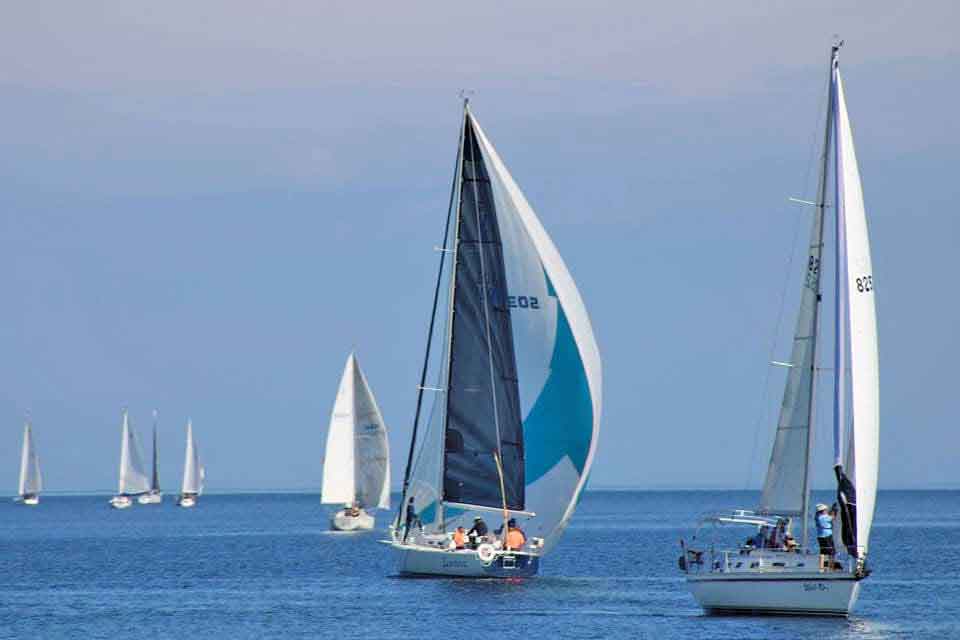 Photo courtesy of Tim Matheson Photo: Sailboat Elusive (centre) competes in the Annual Isthmus Bay Sailboat Races.