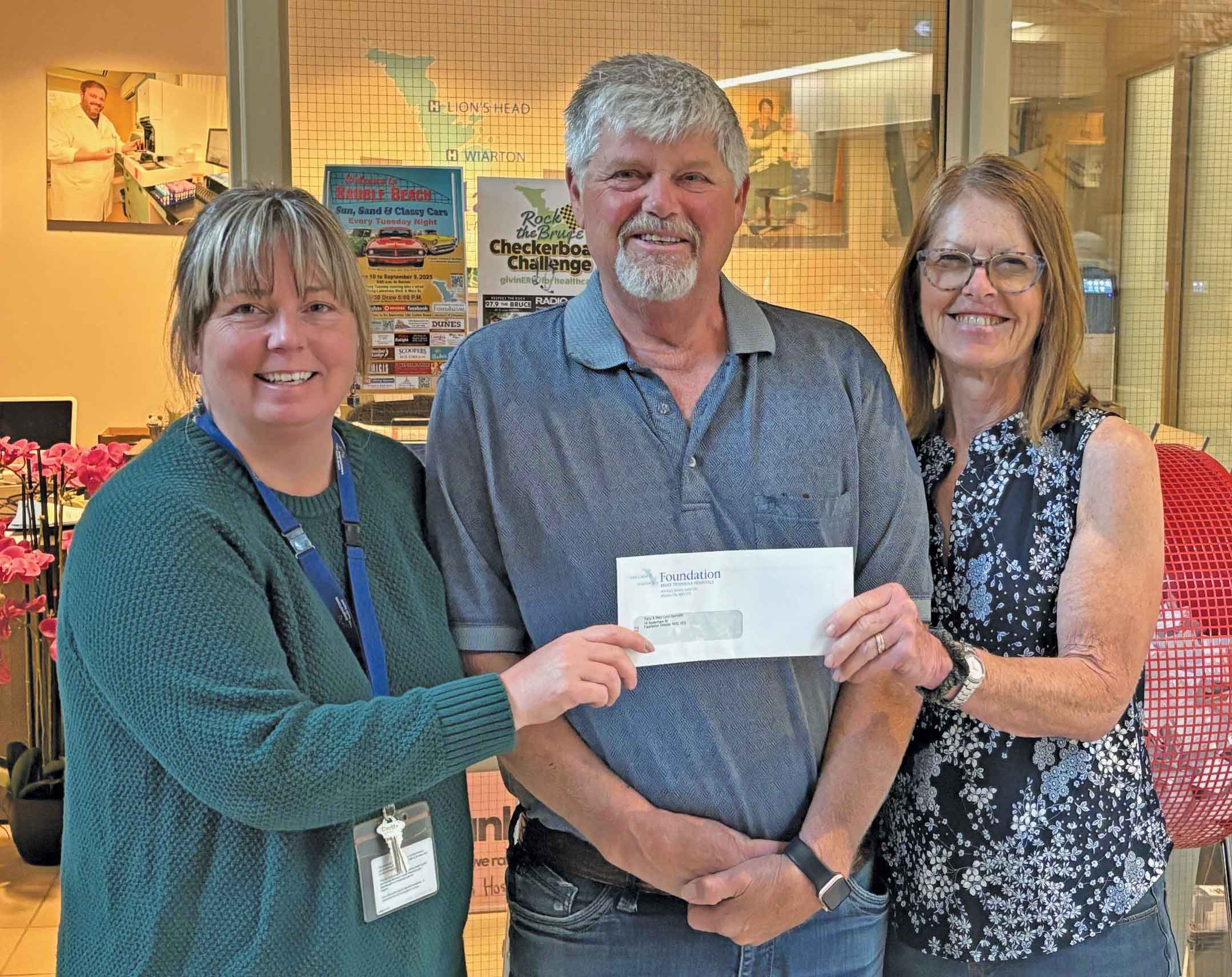 Photo (L-R): April Patry, BPHF Executive Director, with Early Bird Prize winners Terry and Mary Lynn Bernard. Taken at Brightshores Wiarton Hospital on June 18.