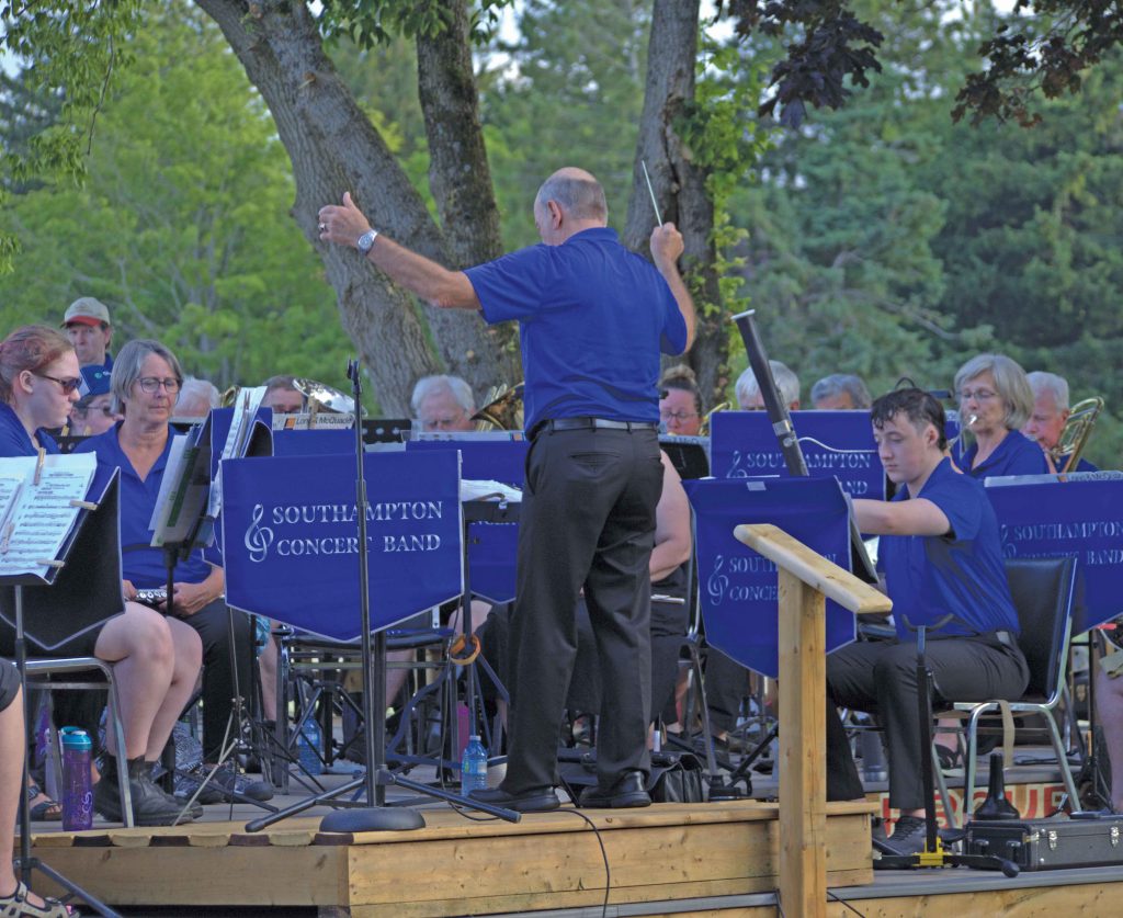 The Southampton Concert Band were able to fit their 45 members on the newly built Harbourside stage. They performed a naval-themed program on July 29, which included music from Disney’s Little Mermaid and Pirates of the Caribbean, from the movie “The Perfect Storm”, a Newfoundland folk song, music from the Jersey Boys and Roger Whittaker’s “The Last Farewell”. Dominik made special mention that “The Last Farewell’ was the last song performed by Ken Hodge, the founder of Harbourside Music. The song was performed by local musicians at Harbourside’s dedication ceremony for Ken Hodge the previous Friday evening.