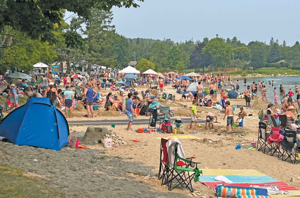Photo: Lion’s Head beach packed with sandcastle builders, their supporters, sun bathers, picnic goers, swimmers, paddlers and a variety of flotation toys.
