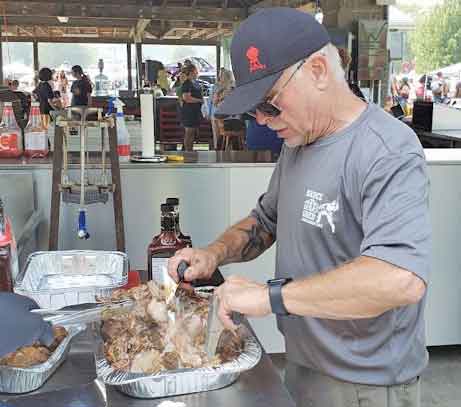 The second annual Wiarton Homecoming Weekend festival was held August third and fourth at the Bluewater Park on the Civic holiday long weekend. This year Bruce Men’s Shed organized and ran the pig roast. Thanks to Joe Vanderzand for lending us his roaster which does a fantastic job of cooking. We teamed with Wiarton Rotary’s Jackie Drawbell, whose team was partially made up of Men’s Shed guys dedicated to cooking the fries and keeping ahead of our plating speed. Overall the two teams did an amazing job of keeping up with the lineup waiting for the five o’clock serving start time. So many people came together to pull this off and we are grateful to all who were able to participate.