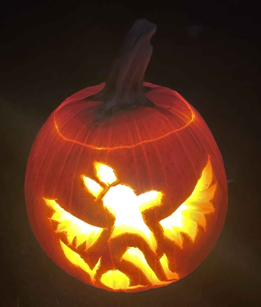 Many of the carvers and spectators have been turning up year after year to contribute and/or to admire the amazing array of art carved on pumpkins. Luna the bunny brought three jack o’ lanterns while Robert was back again this year with his four creations. A surprised appearance of five colourful inflationables added a spark of exuberance to the event as spectators took selfies and admired the adorable costumes.