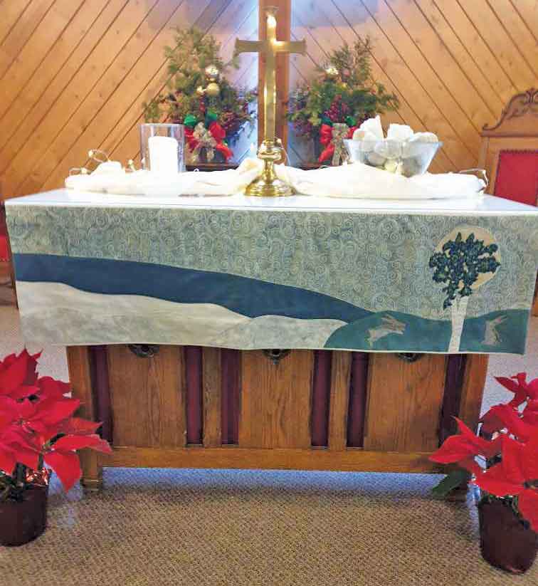 On December 28, Tobermory United revealed the penultimate set of altar decorations that fabric artist Jo Lane is creating to celebrate all the liturgical seasons. The creation of these pieces of art comes as the result of a bequest left to the church by Jan McDonald, who passed away in 2023. This newest set of altar decorations (paraments) are for the seasons of Christmas and Easter and other significant holy days, and they feature the colour white. Jo explains her artistic choices: “I decided that a rolling, snow-covered landscape and a full moon would be a nice backdrop for the birch trees. The cardinal in the foreground of the pulpit banner pays homage to Jan, an artist herself, whose generous donation has made the seasonal paraments to the church possible. For the Communion table, the rolling, snow-covered hills continue toward spring. Hares have almost completely transformed from their winter white coat to brown, and the birch tree is now abundant with leaves. Hope, joy and giving.” Tobermory United is humbled and honoured to have connected Jan’s gift with Jo Lane’s skills and to be able to display such works of art in our sanctuary.