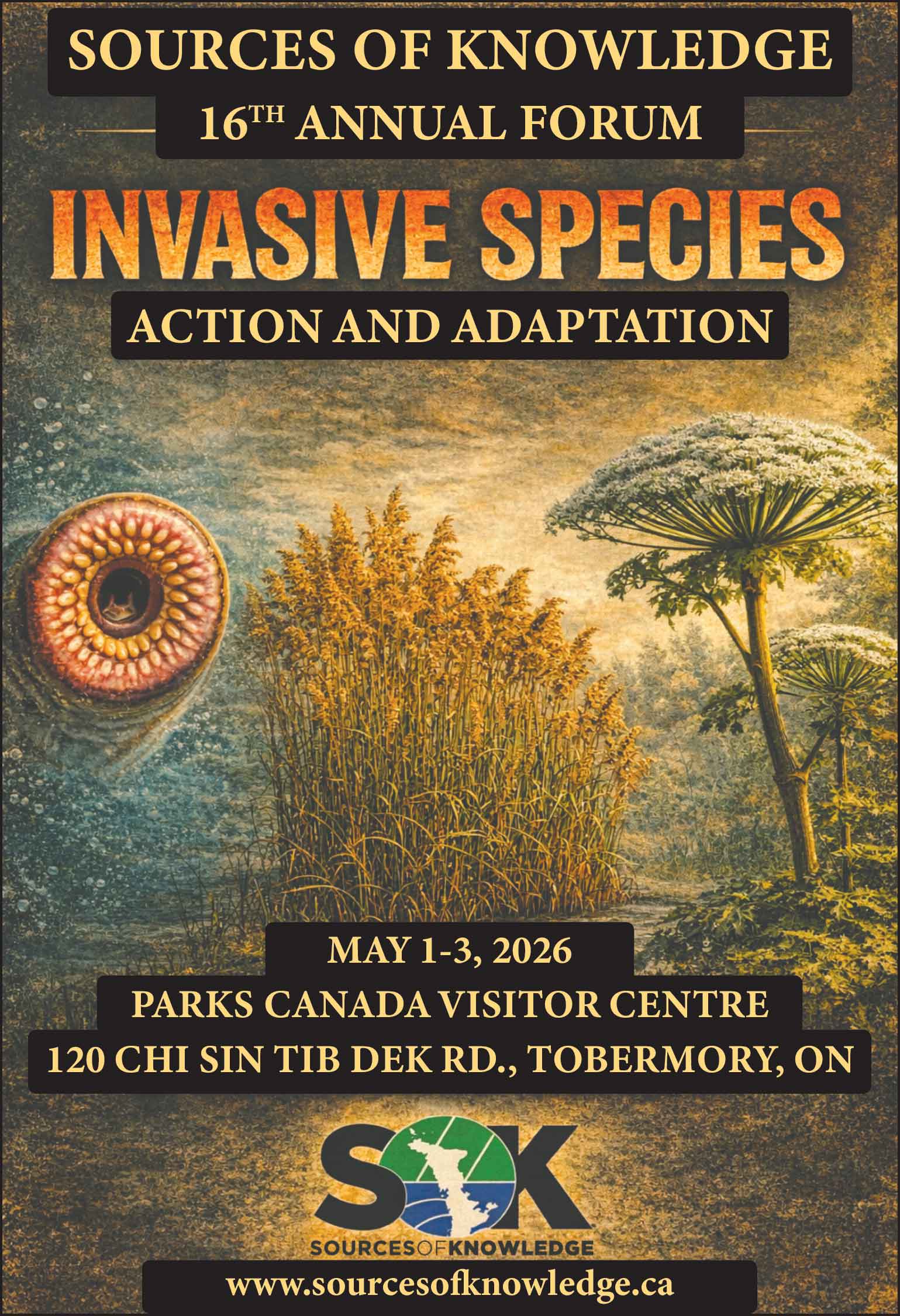 Sources of Knowledge returns May 1–3, 2026, with its annual Forum at the Parks Canada Visitor Centre in Tobermory. This year’s theme – Invasive Species – brings together local field experience and global research to examine one of the most significant ecological challenges facing the Great Lakes and beyond.
